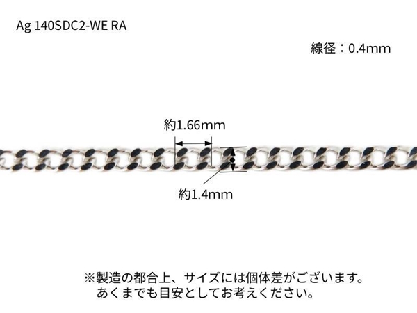 目安寸法 鎖の幅(外径)1.4mm/線径0.4mm/1コマの長さmm/厚みmm
