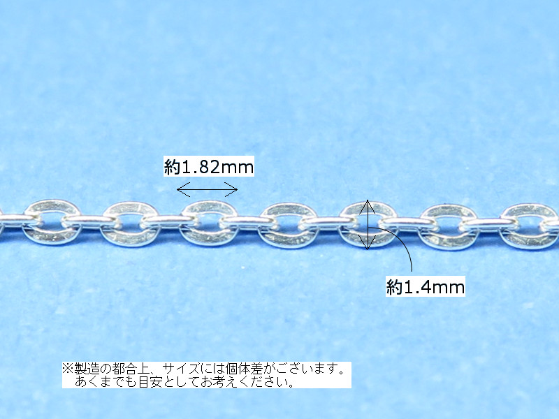 目安寸法 鎖の幅(外径)1.4mm/線径0.35mm/1コマの長さ1.82mm