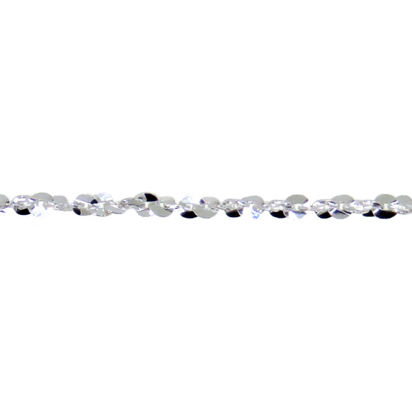 フラット(潰し)加工の小豆チェーンに緩やかなネジリ加工をし、きらきらと光を乱反射するよう仕上げました。華奢ながら、離れて見ても輝きが際立つ一押しのチェーンです。
