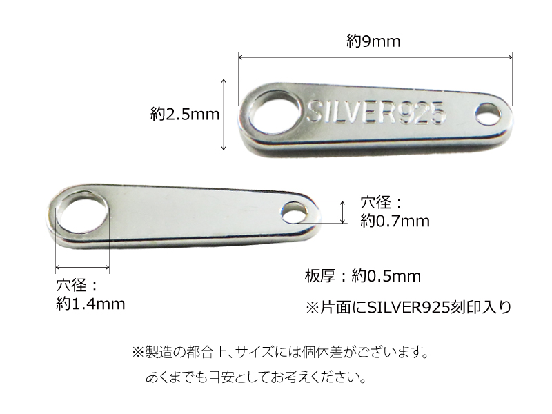 目安寸法 全長9.0mm/幅2.5mm/板厚0.5mm
