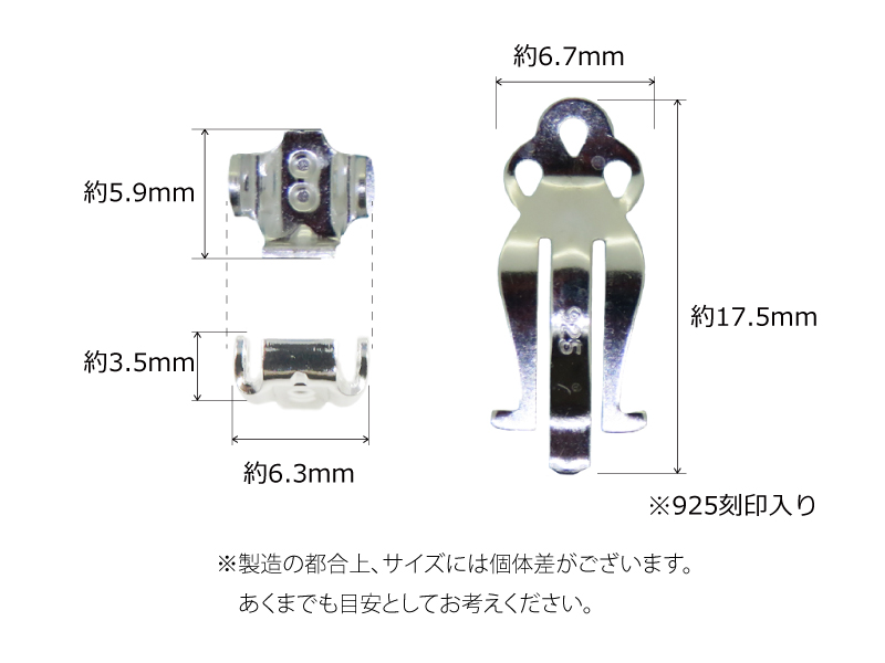 目安寸法 [板バネ]縦幅17.5mm/横幅6.7mm[本体正面部]縦幅5.9mm/横幅6.3mm/厚み(高さ)3.5mm