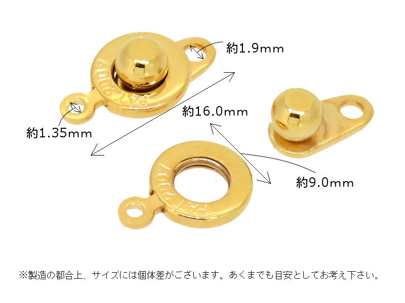 目安寸法 縦幅16mm/横幅9mm/穴径1.9mmと1.35mm