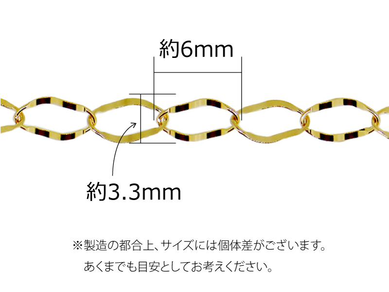 目安寸法 鎖の幅(外径)3.3mm/線径0.35mm/1コマの長さ6mm