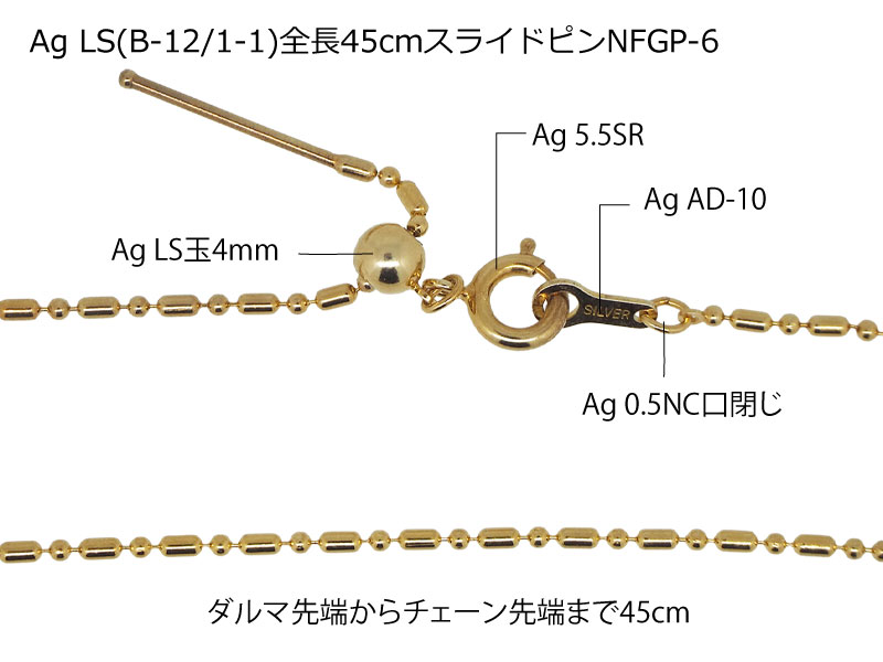 Ag ネックレス LS(B-12/1-1) 全45cm スライドピン NFGP-6