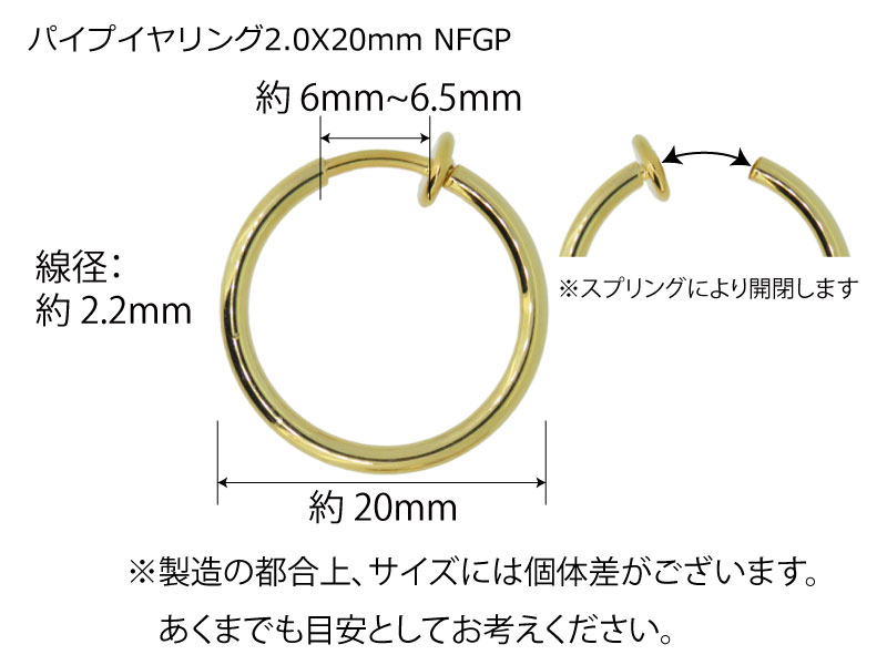 商品名 パイプイヤリング 2.0X20mm NFGP