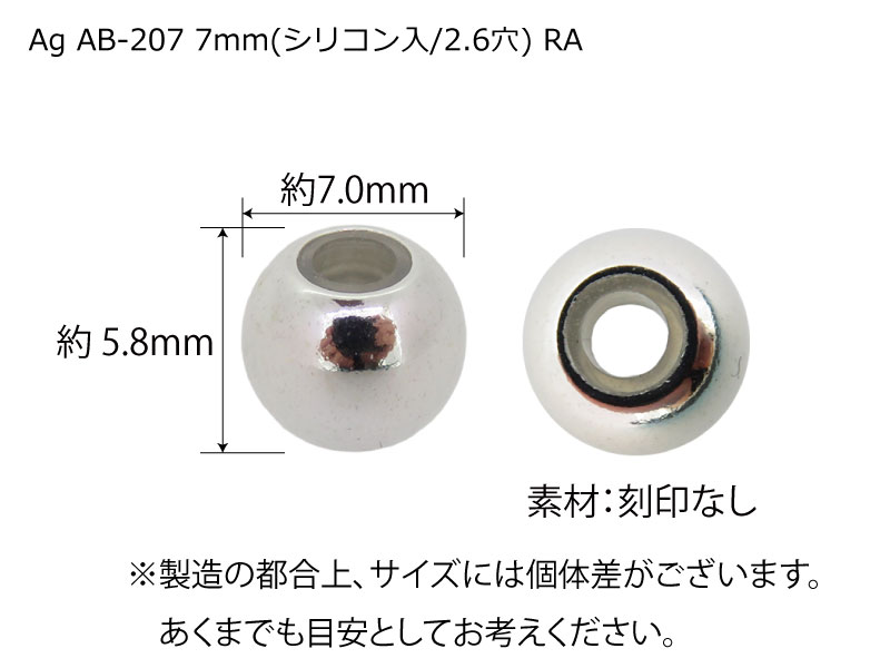 商品名 Ag AB-207 7mm (シリコン入/2.6mm穴) カンなしシリコン入り丸玉 RA