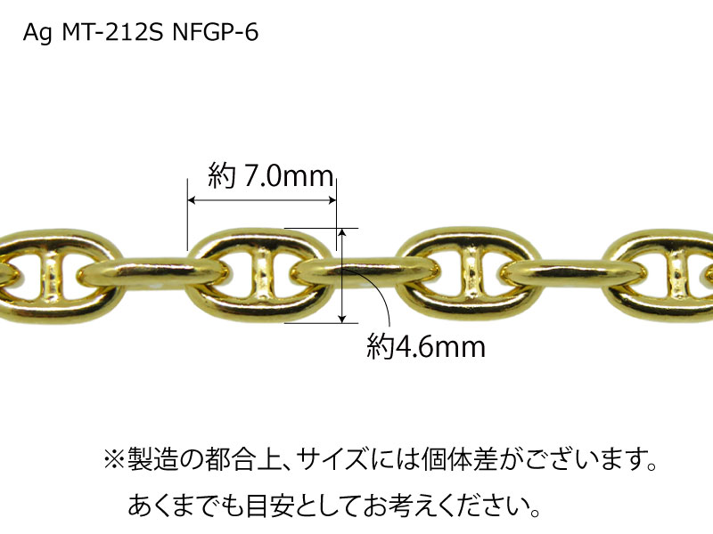 目安寸法 鎖の幅(外径)4.6mm/線径1.2mm/1コマの長さ7.0mm
