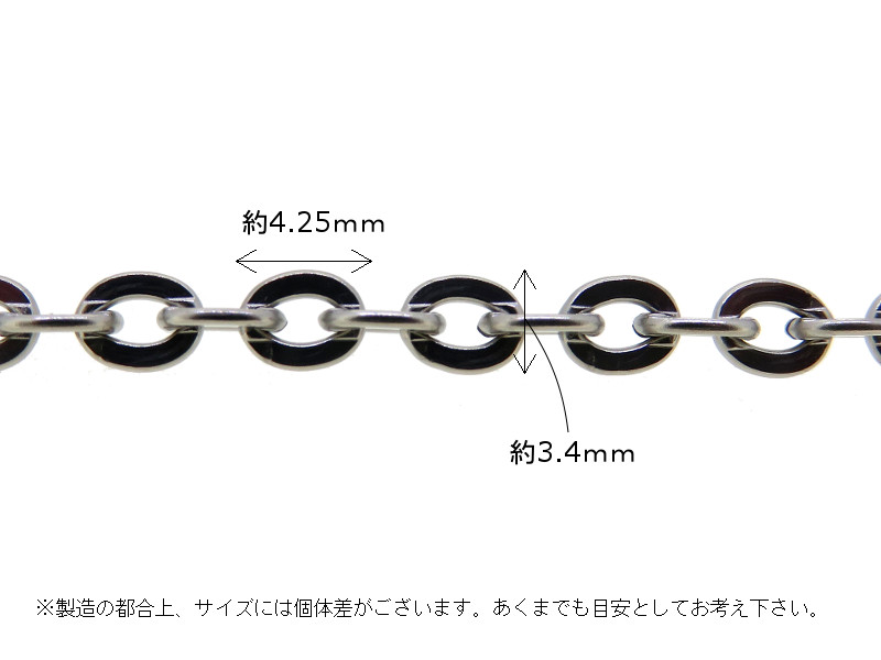 目安寸法 鎖の幅(外径)3.4mm/線径0.8mm/1コマの長さ4.25mm