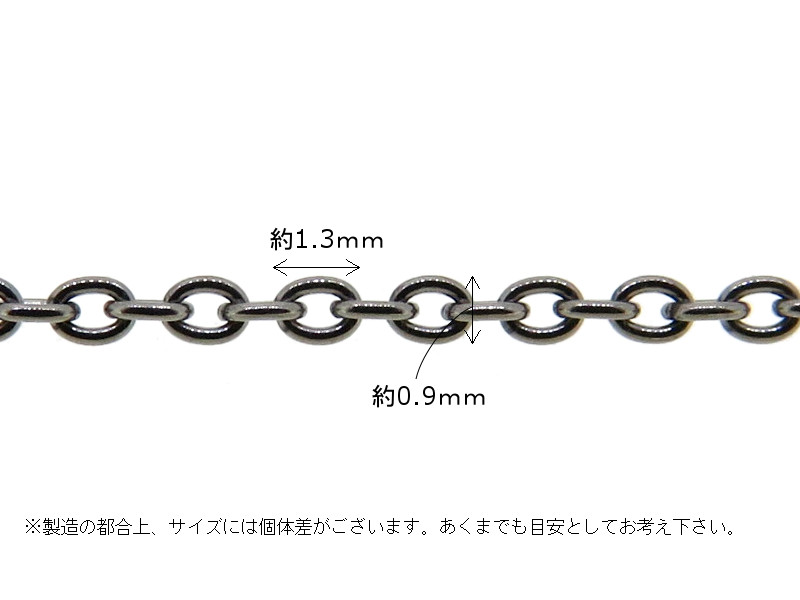 目安寸法 鎖の幅(外径)0.9mm/線径0.25mm/1コマの長さ1.3mm