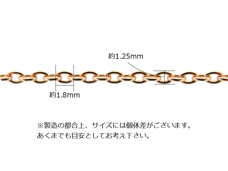 目安寸法 鎖の幅(外径)1.25mm/線径0.35mm/1コマの長さ1.8mm