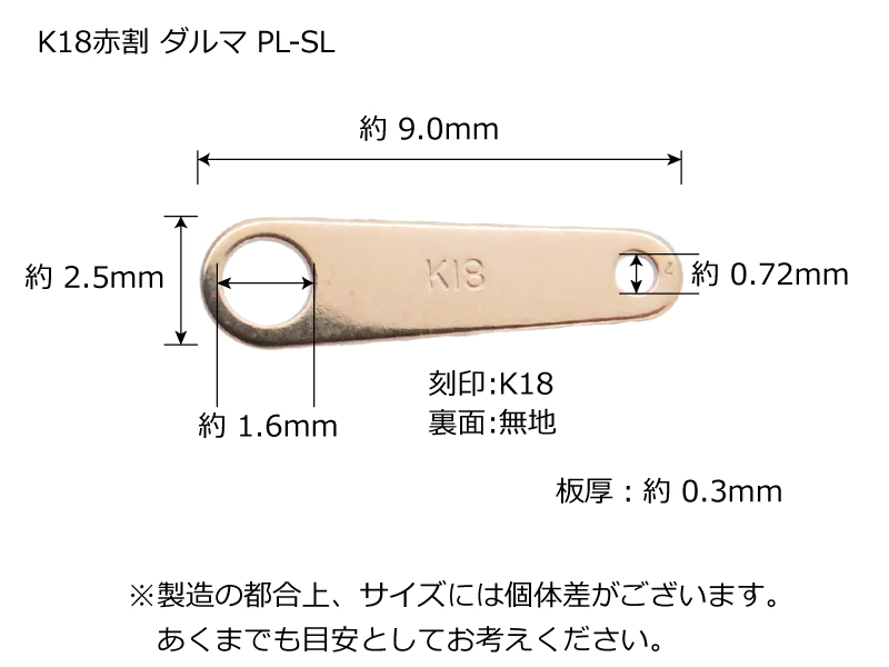 目安寸法 全長9mm/幅2.5mm/板厚0.3mm
