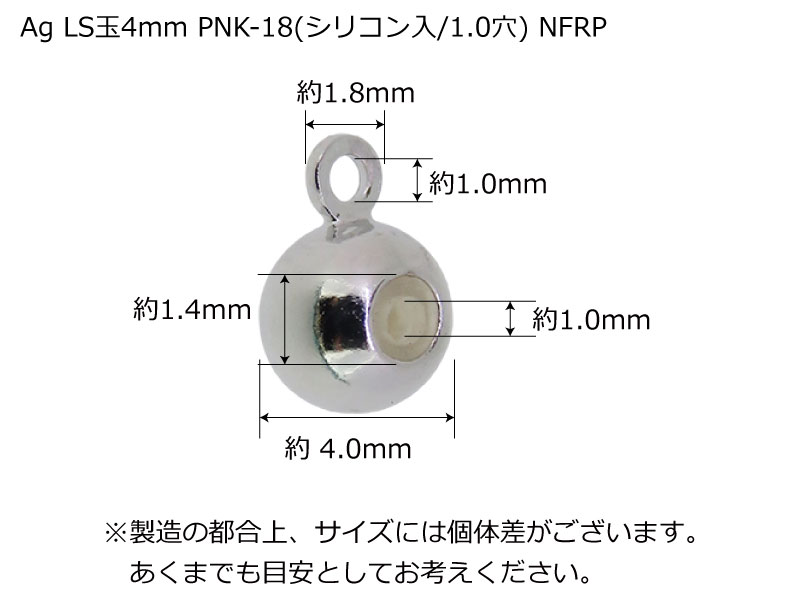 商品名 Ag LS玉 4mm PNK-18(シリコン入/1.0mm穴) カン付シリコン入り丸玉 NFRP