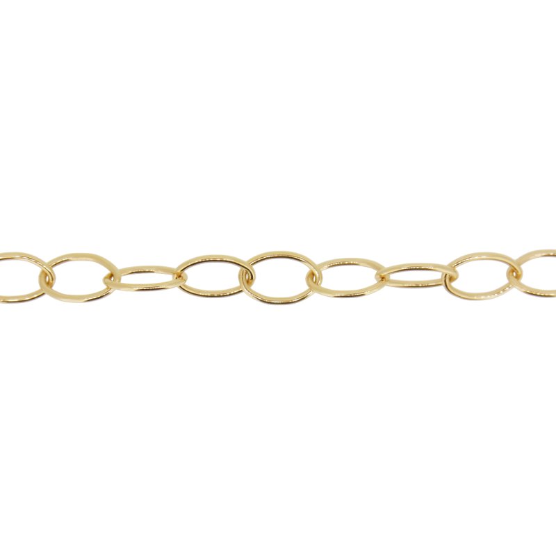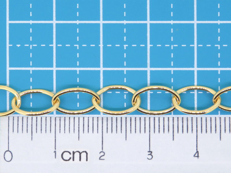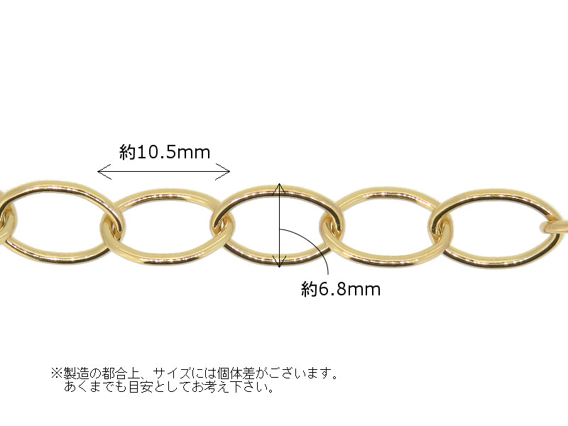 1/20 K14GF製 粗めのロー付け小豆(小判)チェーンです。目安寸法:鎖の幅(外径)約6.8mm 線径1.0mm 1コマの長さ約10.5mm