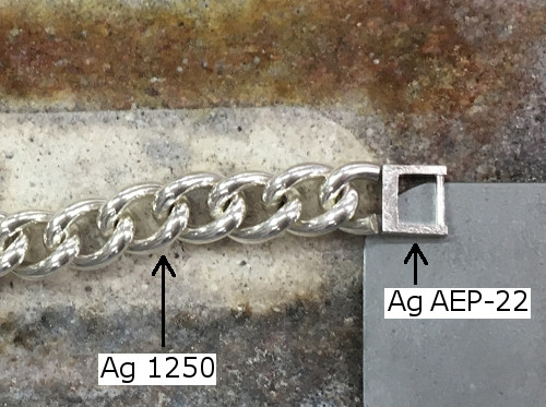 反対側の鎖端にも、同様に中留め用エンドピースをロー付けします。